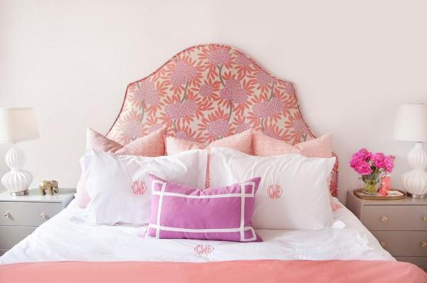 2.粉紅色的床以及色彩花紋十分大膽的地毯讓房間如花朵般盛開。