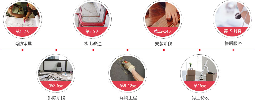 施工過程統(tǒng)一安排,銜接緊密,從毛坯到入住只需15天標準工期。